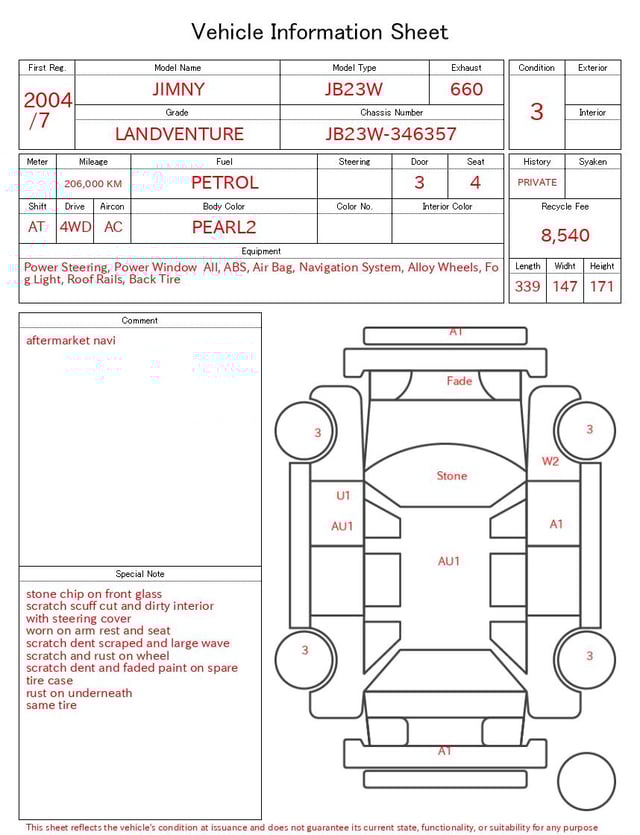 Auction sheet notes