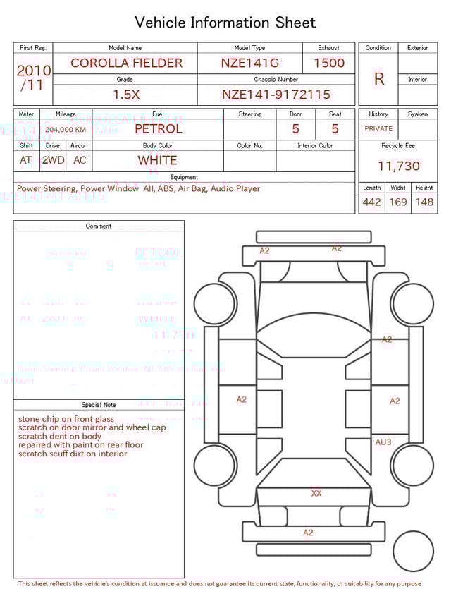 Auction sheet notes