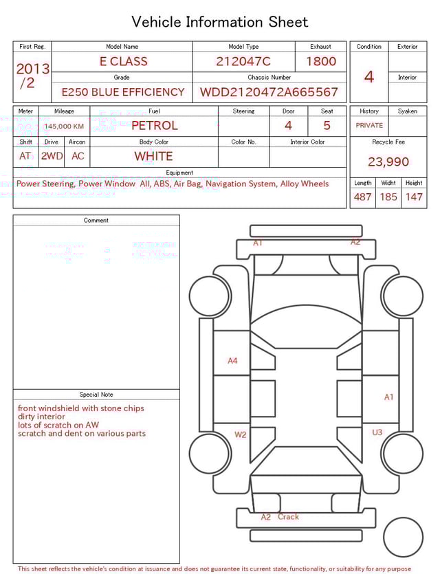 Auction sheet notes
