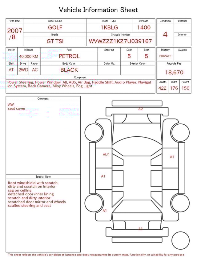 Auction sheet notes