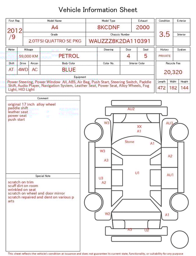 AUDI A4 2012/9 2.0TFSI QUATTRO SE PKG