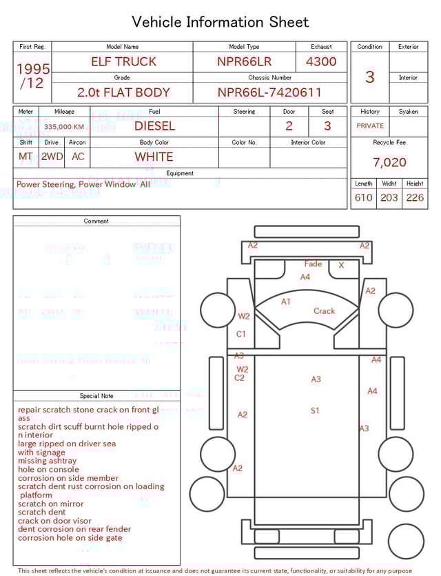 ISUZU ELF TRUCK 1995/12 2.0t FLAT BODY