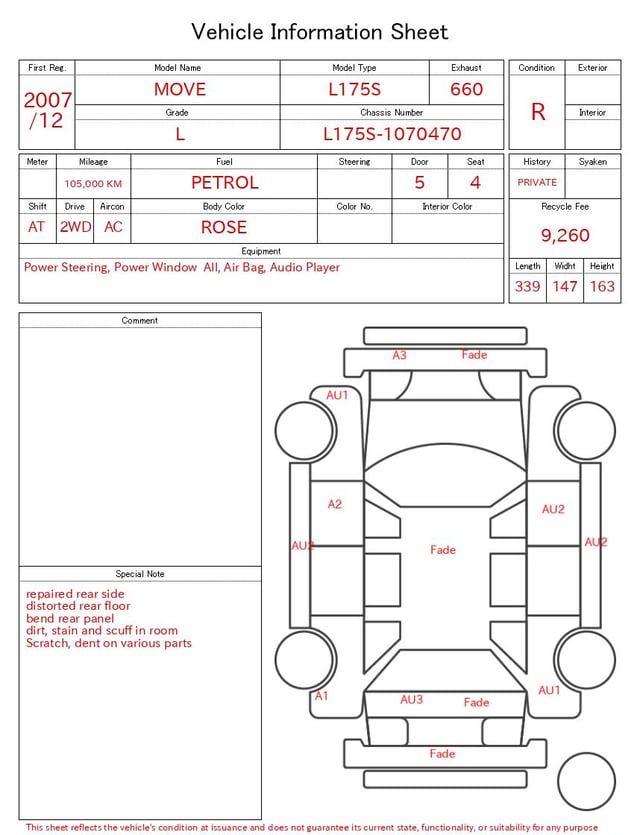 Auction sheet notes